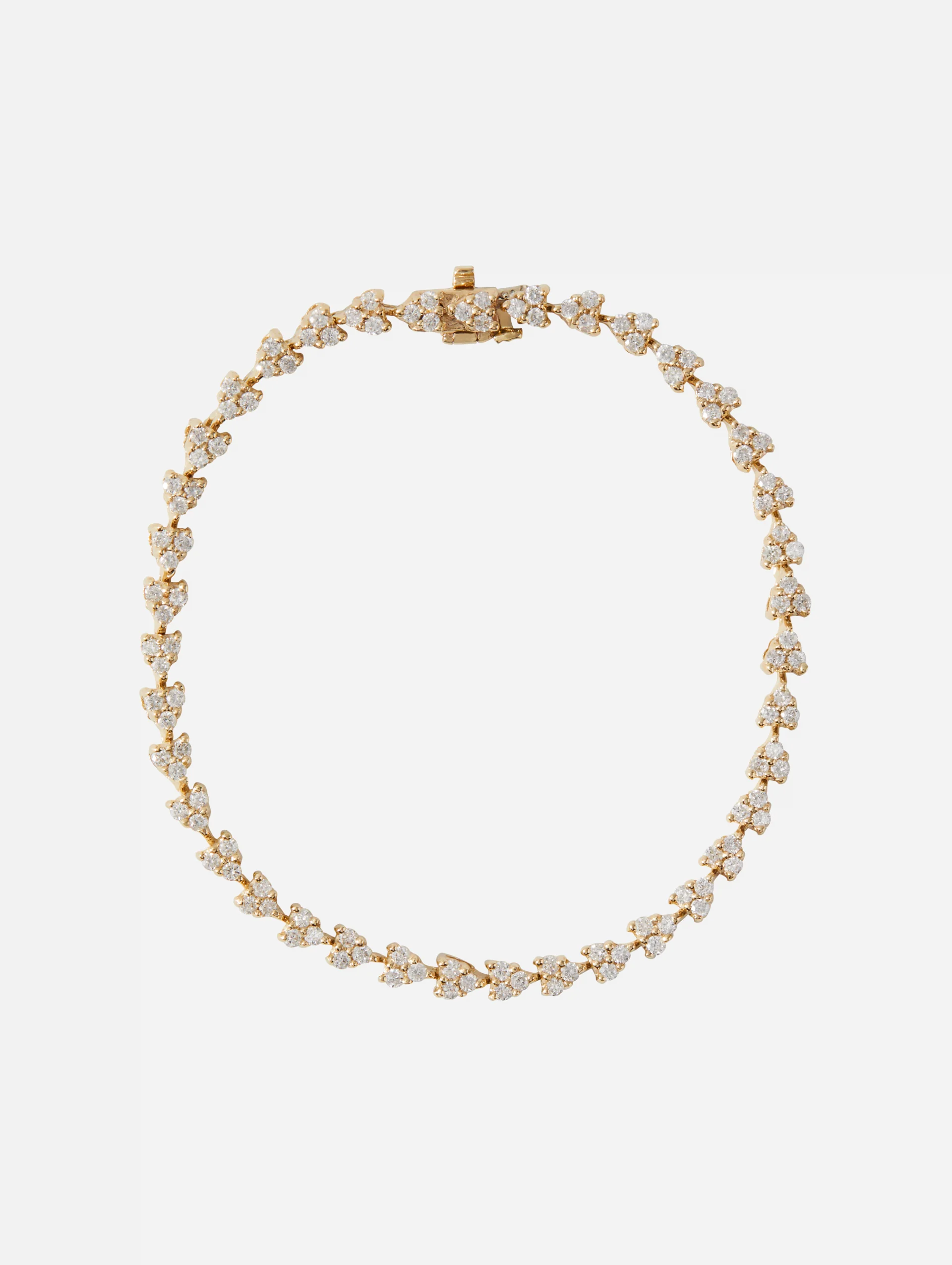 With a trio of white diamonds set on solid gold, each articulated link of the Lizzie Bracelet flow into one another, for an infinite circle of sparkle.