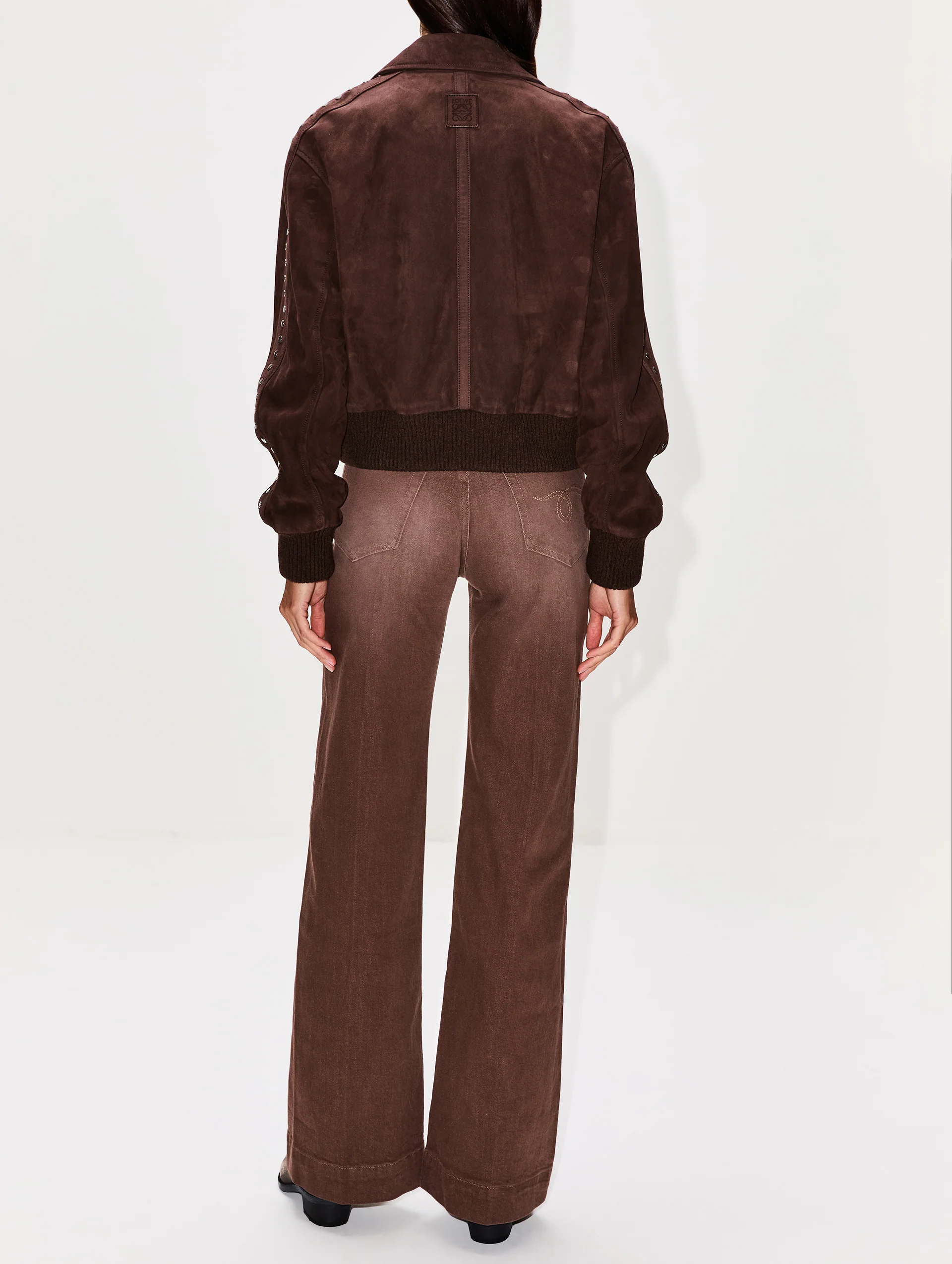 Ideal for layering, this luxurious suede piece features drop shoulders and elasticized ribbed hems that shape the overall relaxed fit.