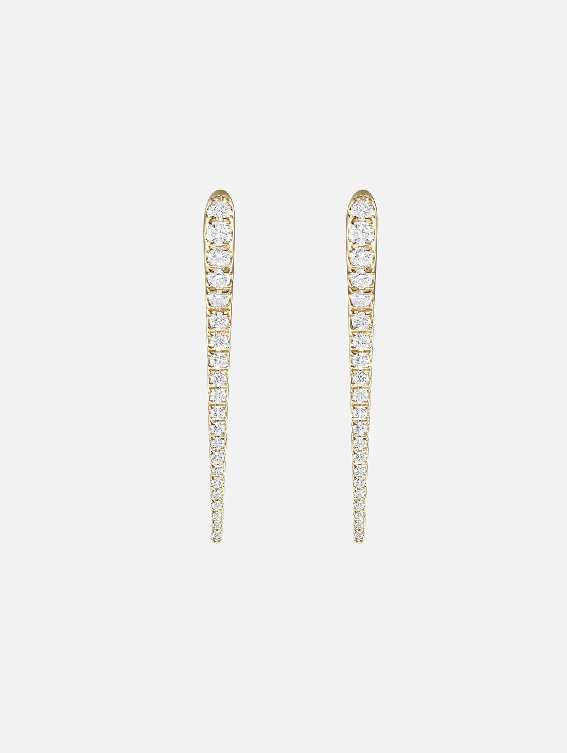 Simple yet elegant, the Lola Medium Needle Earrings were inspired by a sewing needle, delicate and acicular. Set in 18k yellow gold and encrusted in white diamonds, these are an effortless choice for everyday wear.