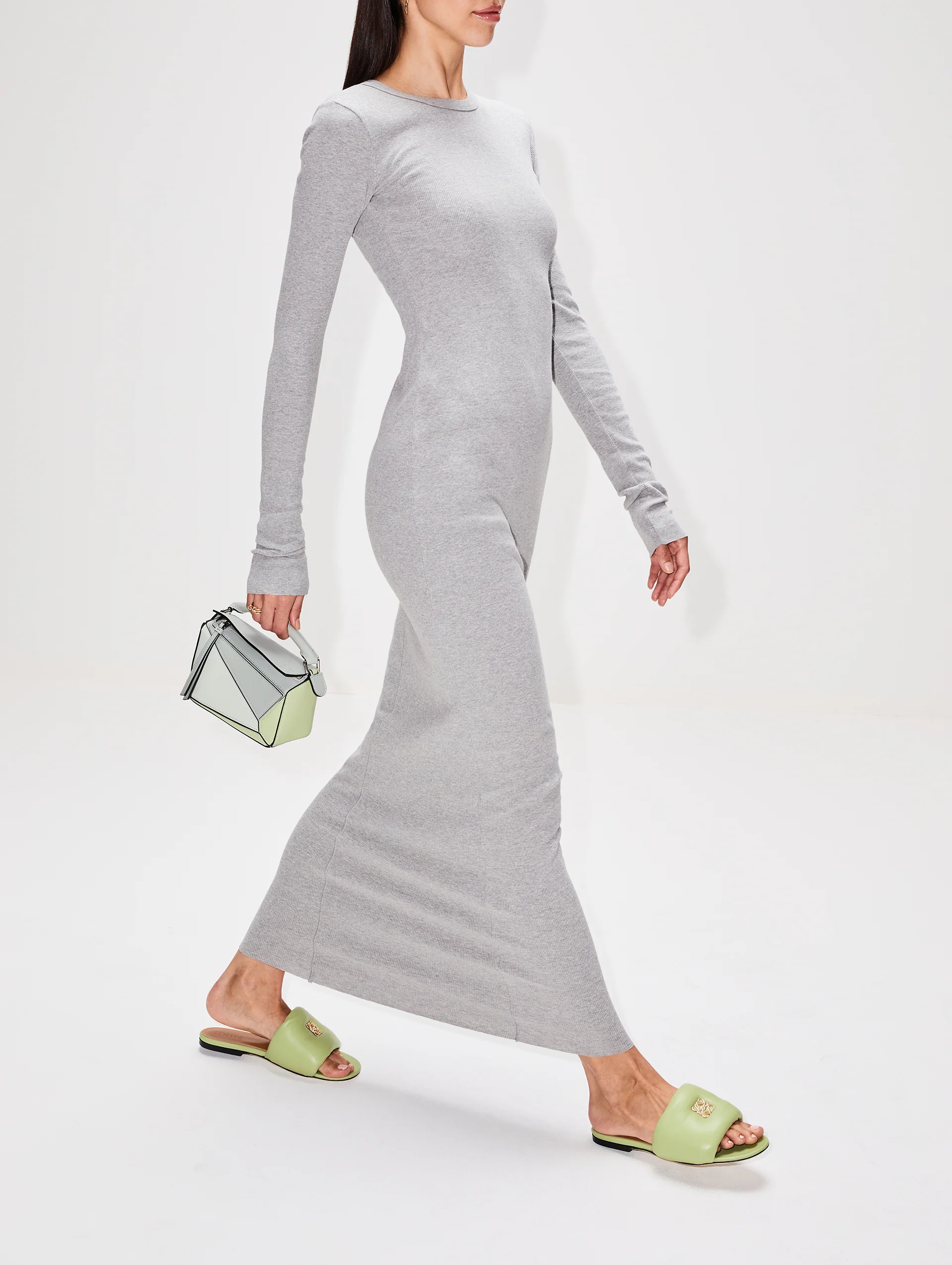 Soft, stretchy and lightweight, this long sleeve dress feels incredible as it hugs the figure close in a cotton and modal blend. Defined by a clean crew neckline and slim long sleeves, the sheath silhouette is ribbed throughout for a sculpting fit.