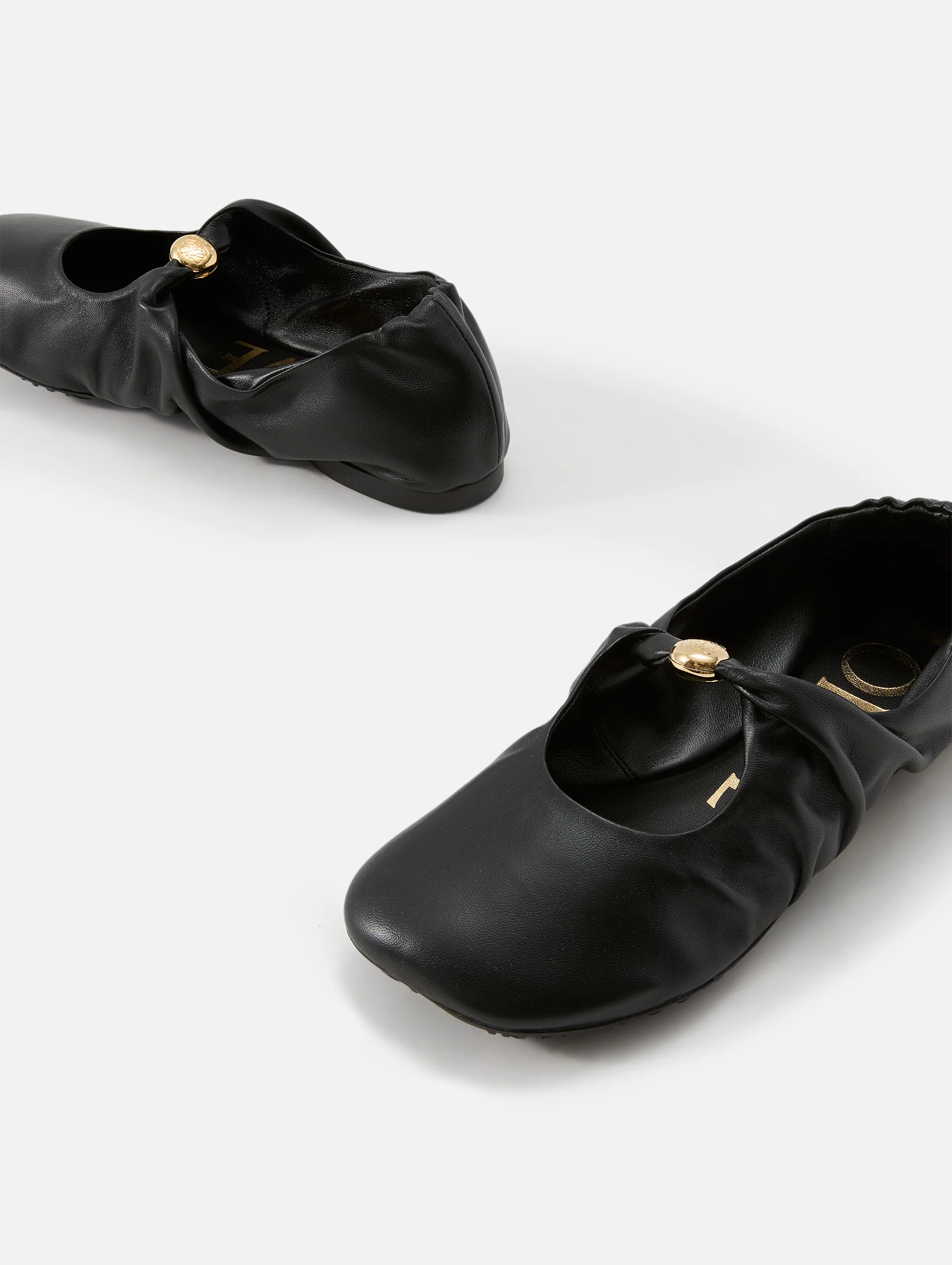 This ballerina flat is designed with a flexible Nappa leather upper complete with a metallic pebble with an engraved Anagram detail. The signature petal toe shape adds to its uniquely LOEWE aesthetic.