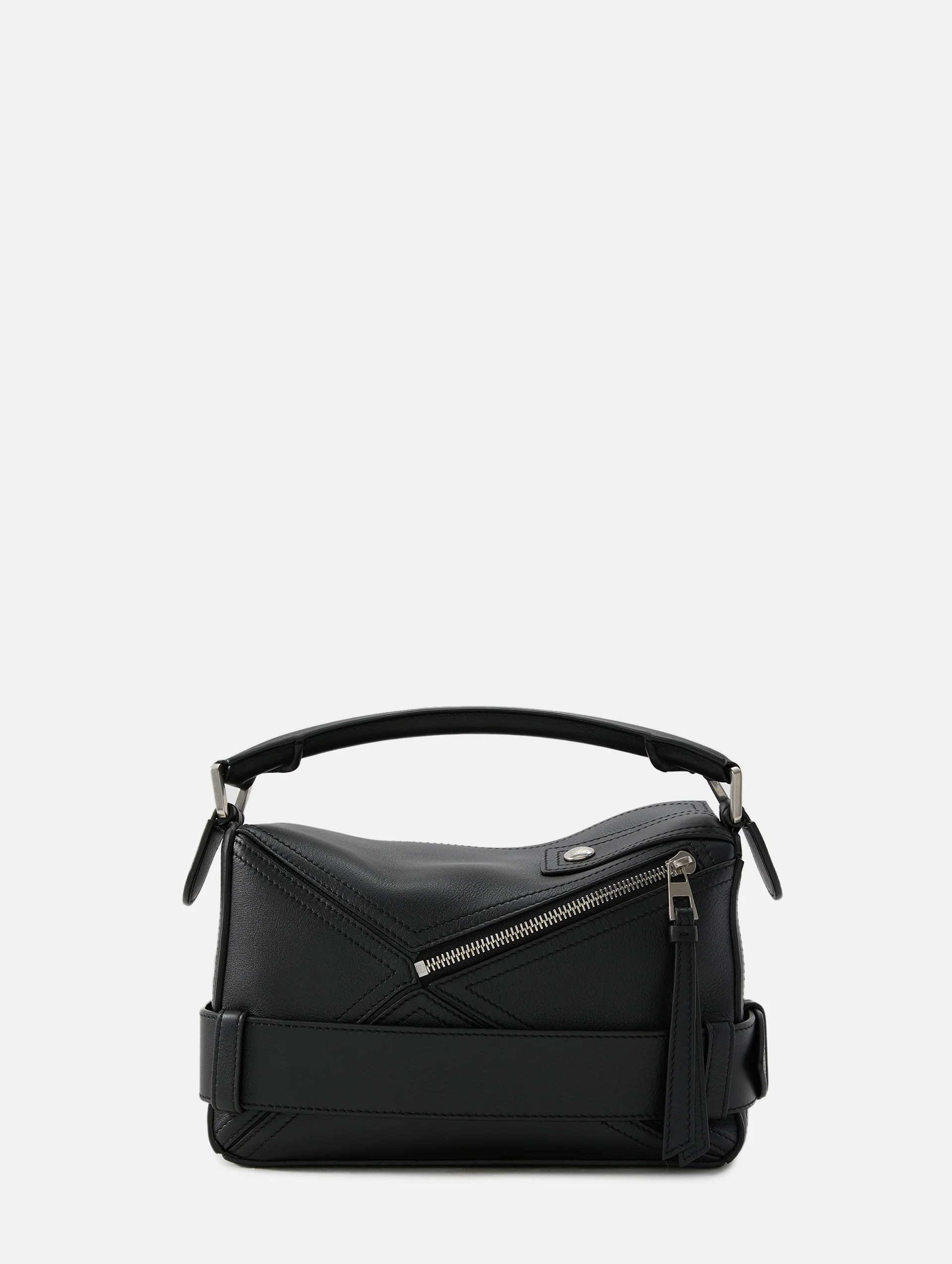 Loewe proves their Small Puzzle Bag is the missing piece to a well-curated purse collection. Reach for this artful accessory to add interest to your look. Details to be admired: geometric design, contrast stitching and a top handle with an added biker buckle strap around the exterior.