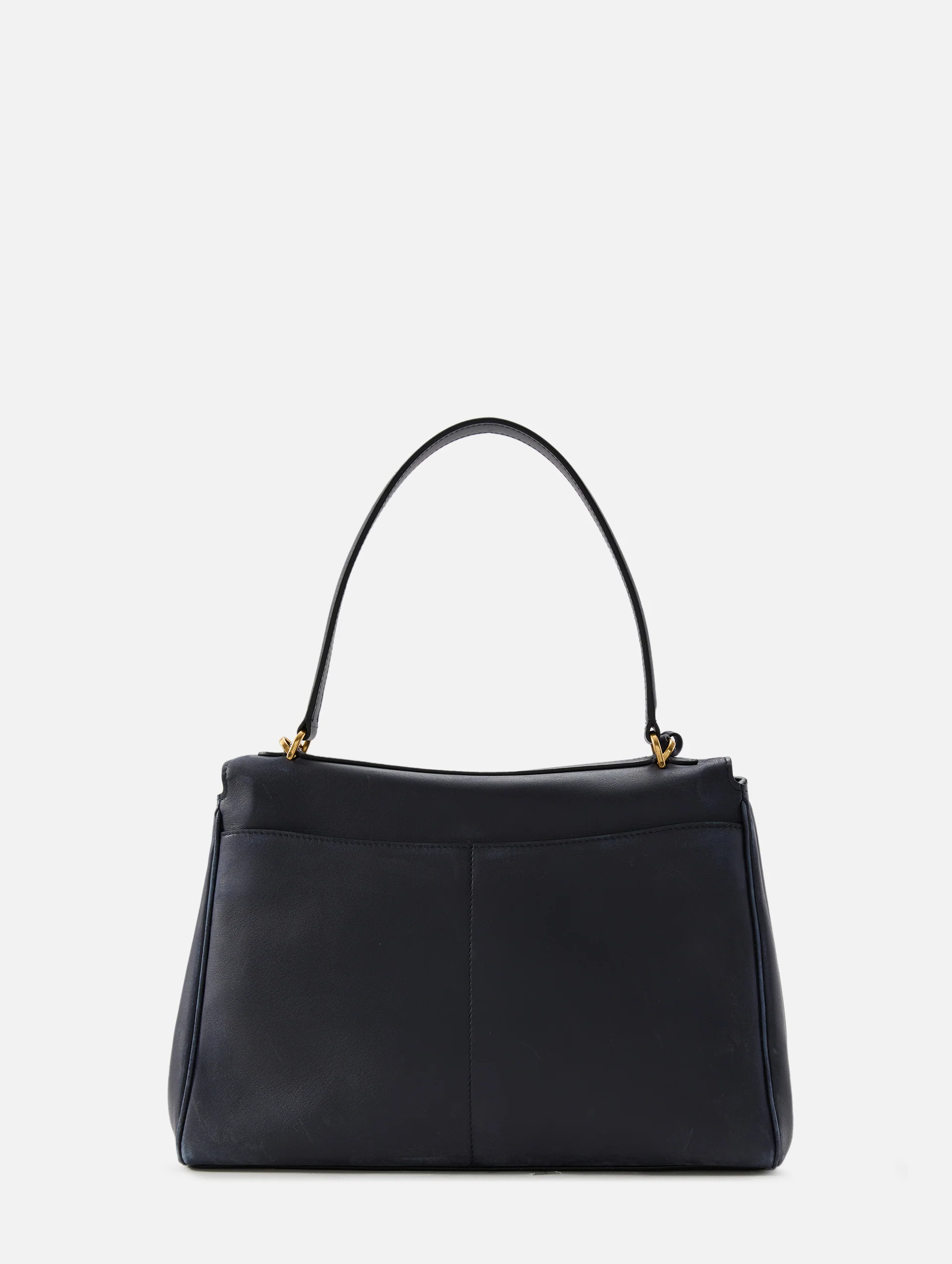 Baleciaga''s flawless top handle bag carries the heritage and luxury of its rodeo drive-inspired name. Sleek gold-tone hardware embellishes a buttery soft leather, actuated by the trapezoid-shaped top flap, removable shoulder strap, and key holder attachment.