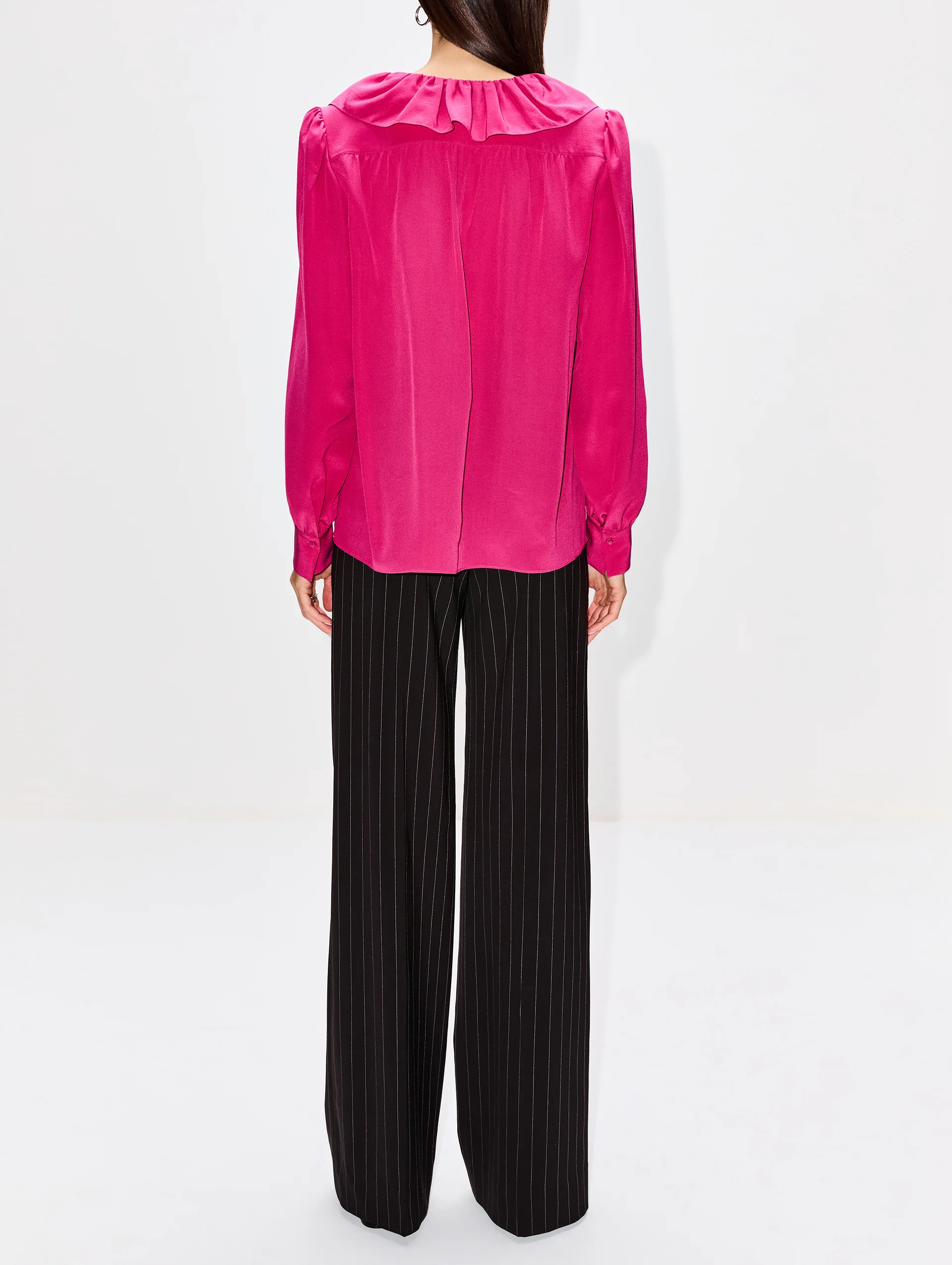 Let romance bloom with the Chloé ruffle V neck blouse, a delicate embrace of soft details and effortless elegance, perfect for moments that linger.