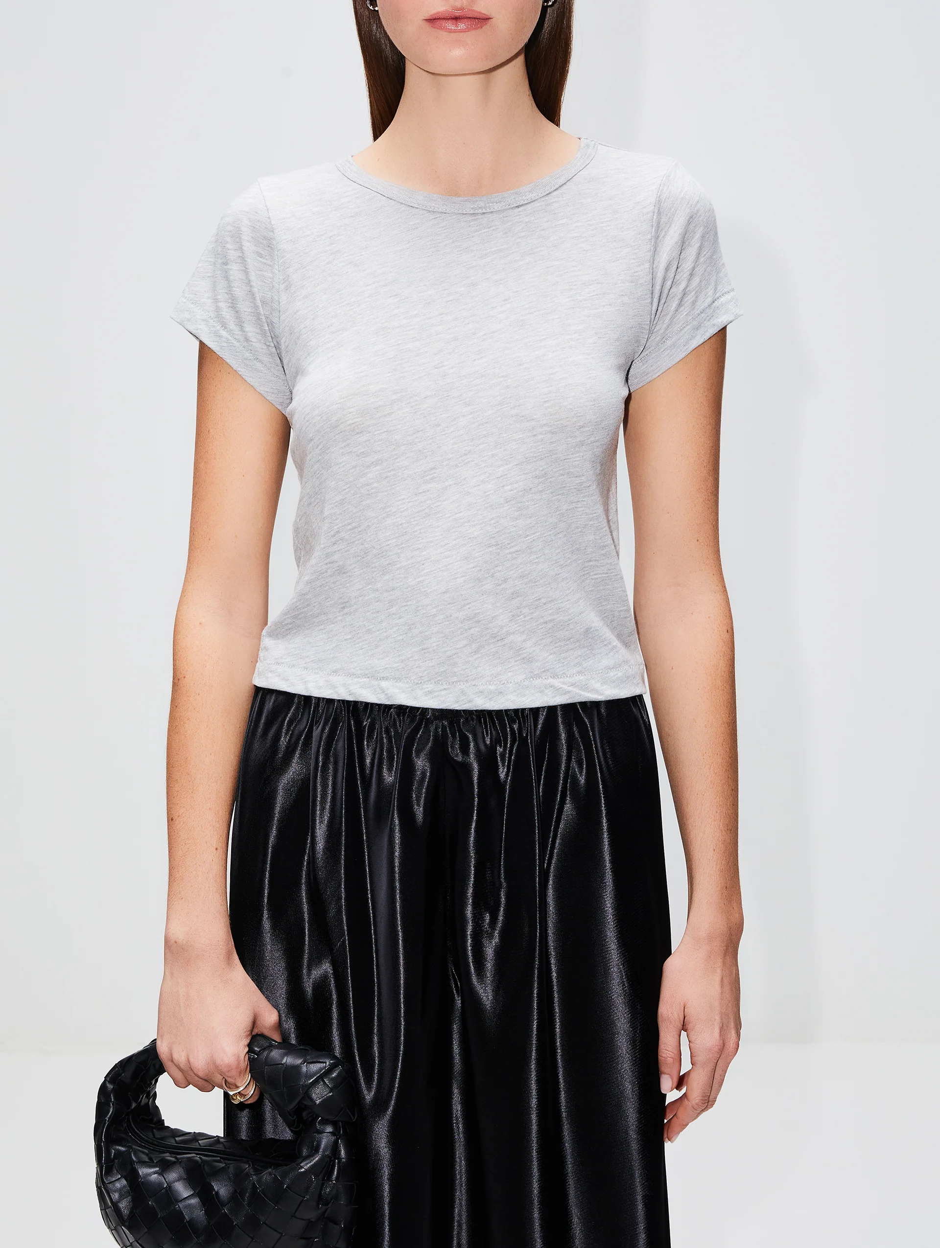 Stylist and founder Chloe Bartoli weaves a quiet luxury into this ‘90s baby tee. Sexy and soft, the shrunken tee offers a feminine, body-skimming fit and slightly cropped length, crafted in a lightweight cotton-modal blend for everyday comfort.