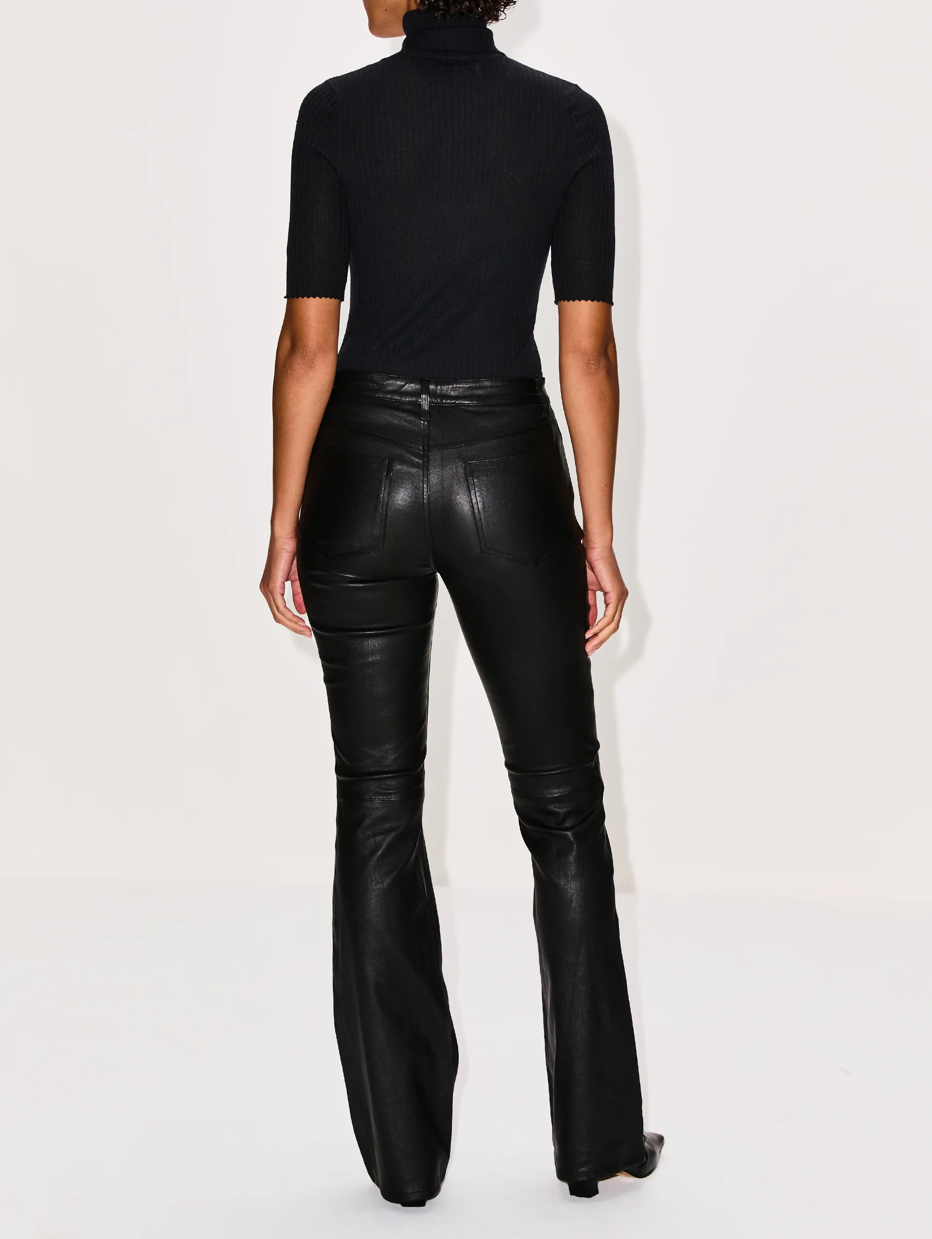 This ribbed cashmere turtleneck features 3/4 sleeves and a chic slim fit, making it perfect for layering piece alongside the designer's loved leather trousers.