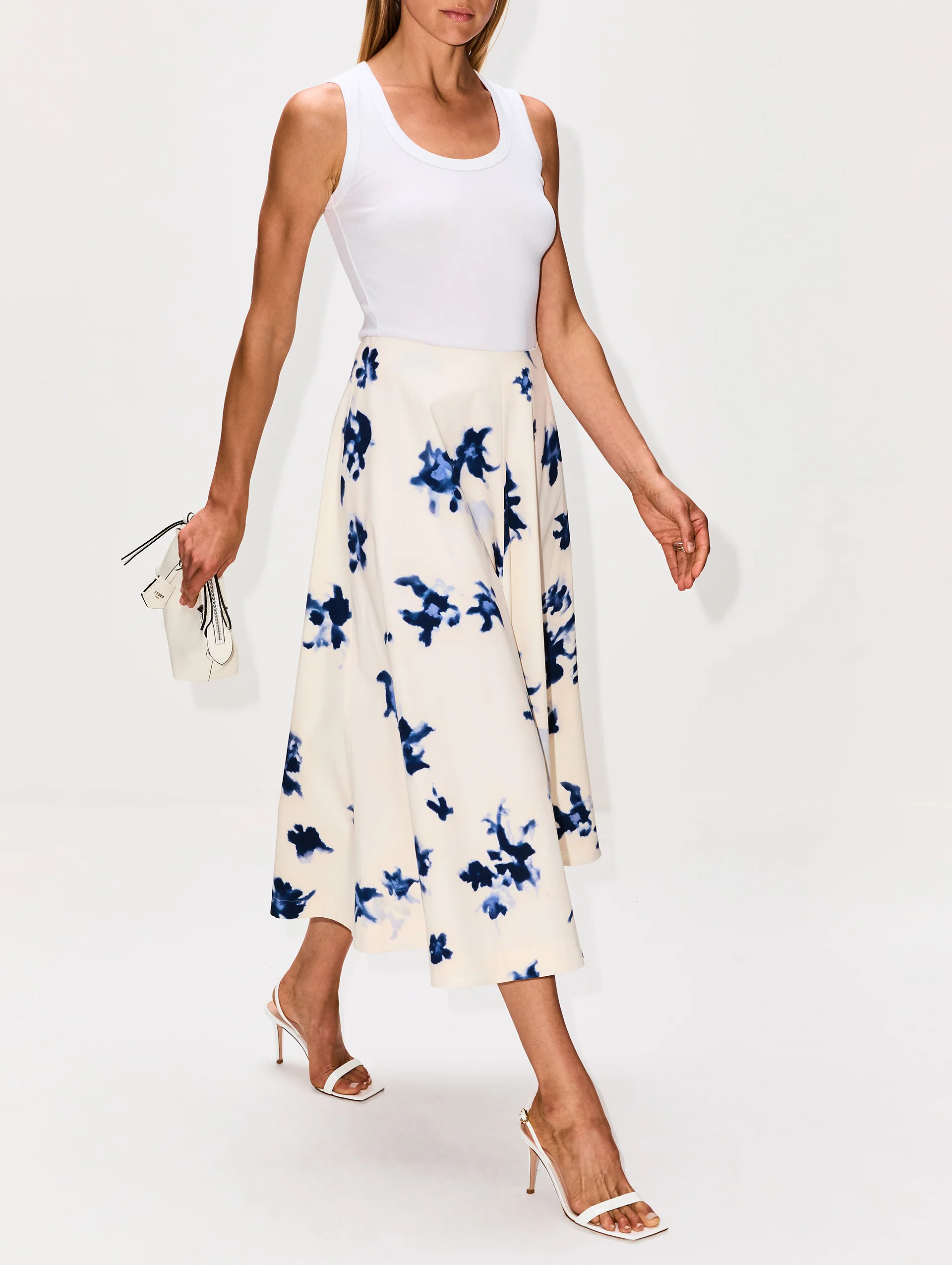 Perfect for spring and summer days, the Varda Skirt is designed with an elegant flared midi length and a lightweight texture— thanks to its 100% cotton construction.